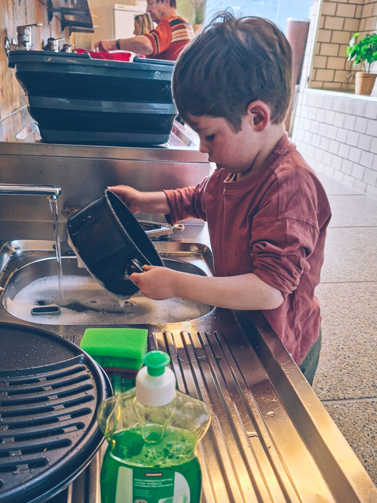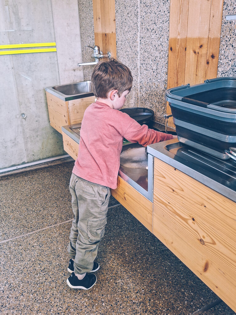 Wir sind am Freitag gegen 18:00 Uhr angekommen, haben direkt den Grill angeworfen und das mega Wetter genossen. So ein Start ins Wochenende ist einfach Gold wert. Lias hat uns sogar beim Abwasch geholfen – richtig fleissig. Schliesslich hat es dort ein Abwaschbecken für Kinder. Und dann kam das Highlight des Abends: Die Jungs haben plötzlich total Freude am Velofahren bekommen. Sie sind einfach losgedüst und haben ihre Runden gedreht. Da war für uns schnell klar: Am Sonntag machen wir eine richtige Tour.
