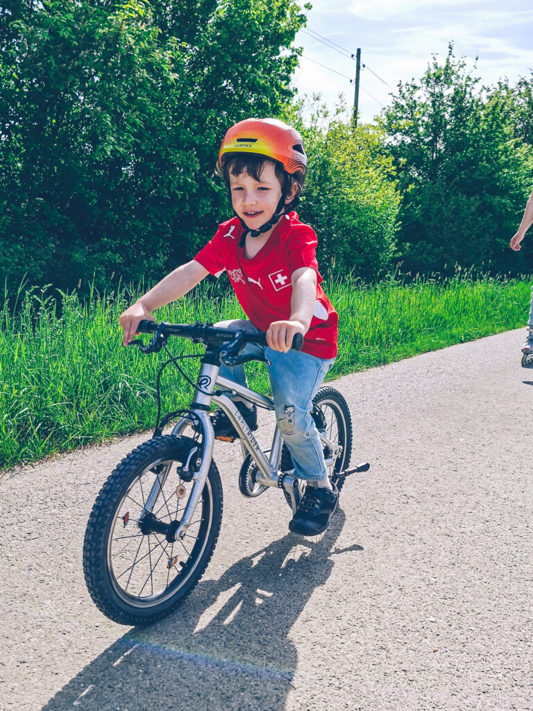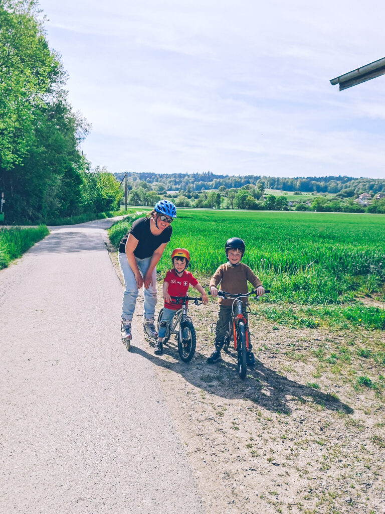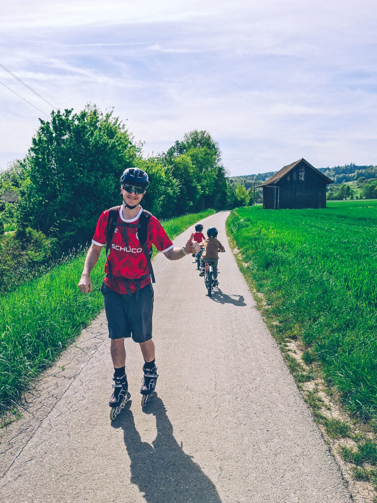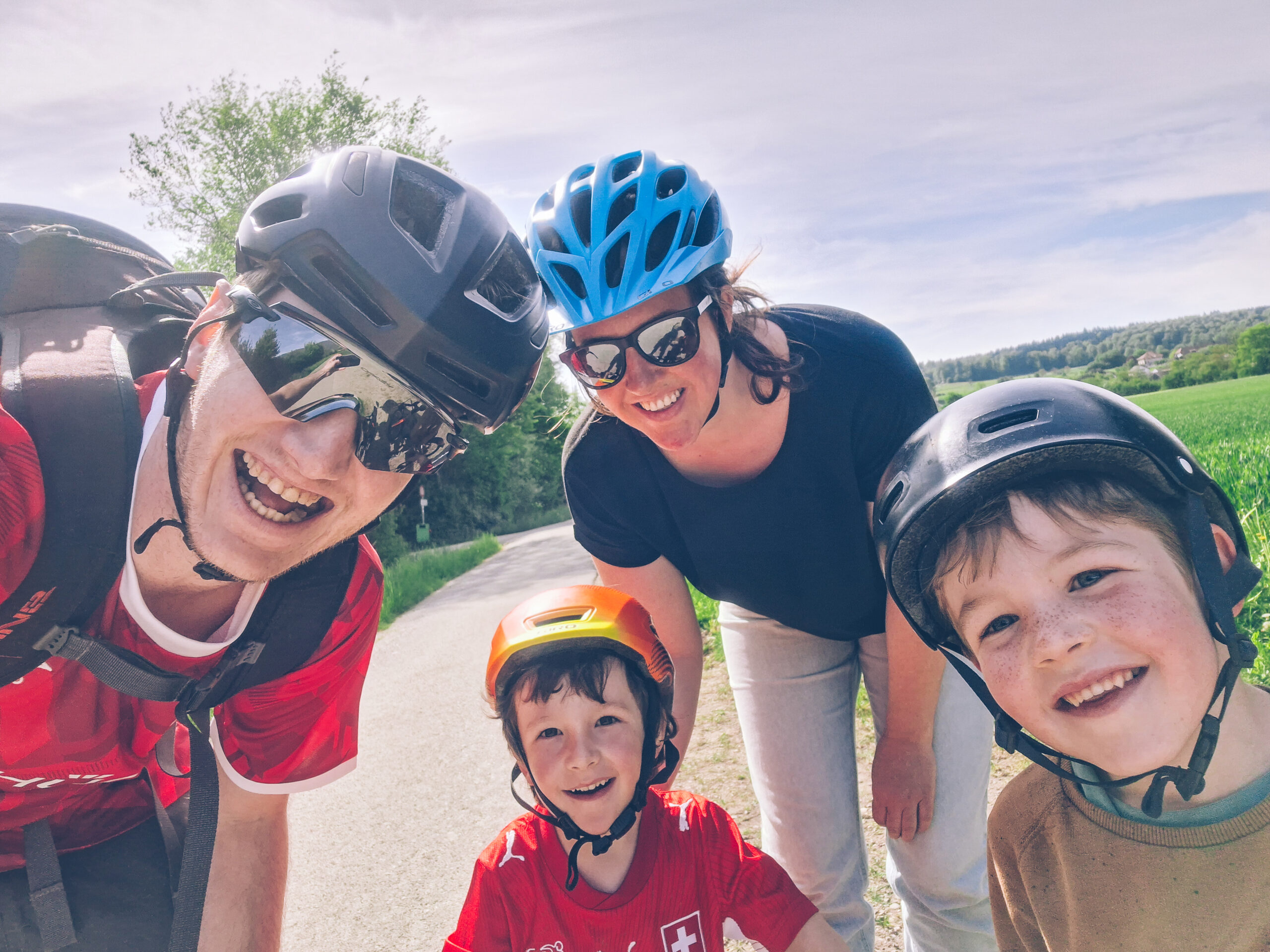 Am Sonntag haben wir gefragt, ob wir etwas länger bleiben dürfen – und durften tatsächlich bis 14:00 Uhr bleiben. Richtig cool. So konnten wir unsere geplante Velotour machen: Die Jungs auf dem Velo, wir mit den Rollerblades daneben. Unsere erste richtige Tour als Familie – und sicher nicht die letzte. Zum Schluss noch zusammen etwas essen, dann zusammenräumen und wieder nach Hause.
