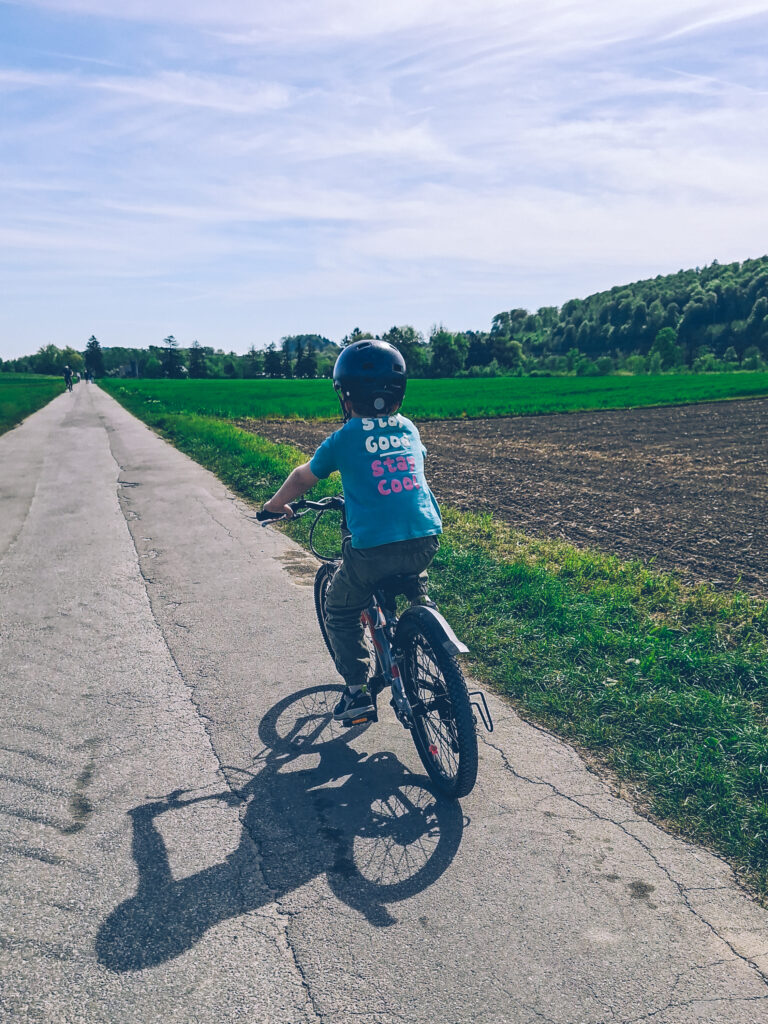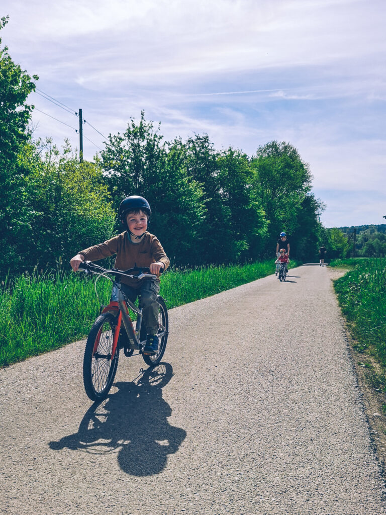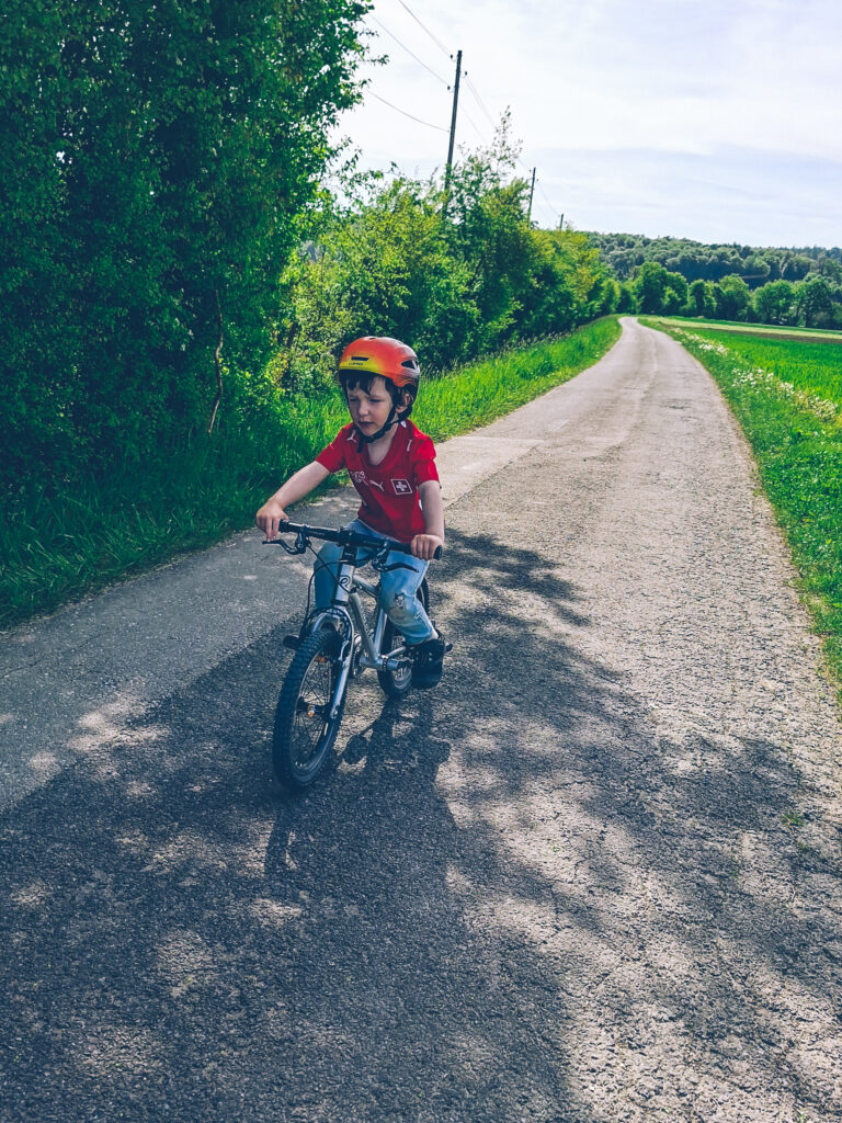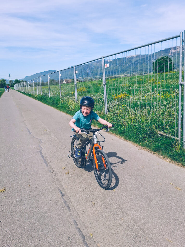 Am Sonntag haben wir gefragt, ob wir etwas länger bleiben dürfen – und durften tatsächlich bis 14:00 Uhr bleiben. Richtig cool. So konnten wir unsere geplante Velotour machen: Die Jungs auf dem Velo, wir mit den Rollerblades daneben. Unsere erste richtige Tour als Familie – und sicher nicht die letzte. Zum Schluss noch zusammen etwas essen, dann zusammenräumen und wieder nach Hause.